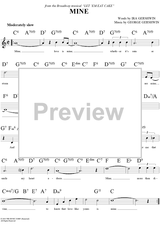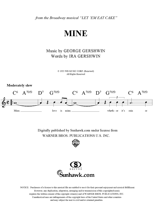 Digital Sheet Music for Mine by , George Gershwin scored for Lead Sheet; id:268591