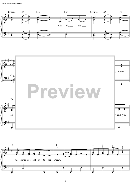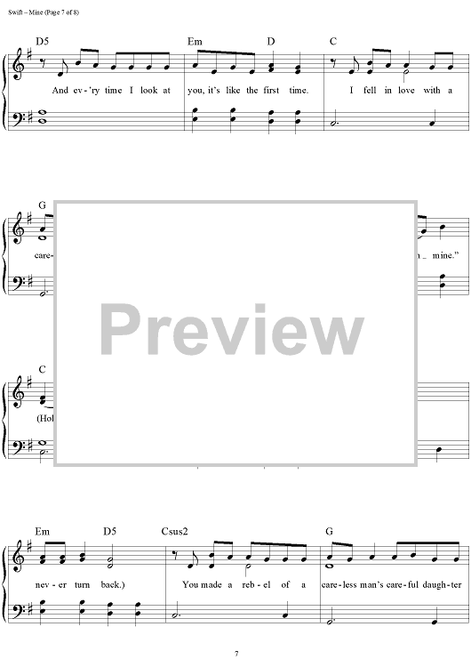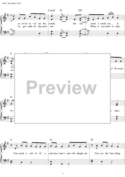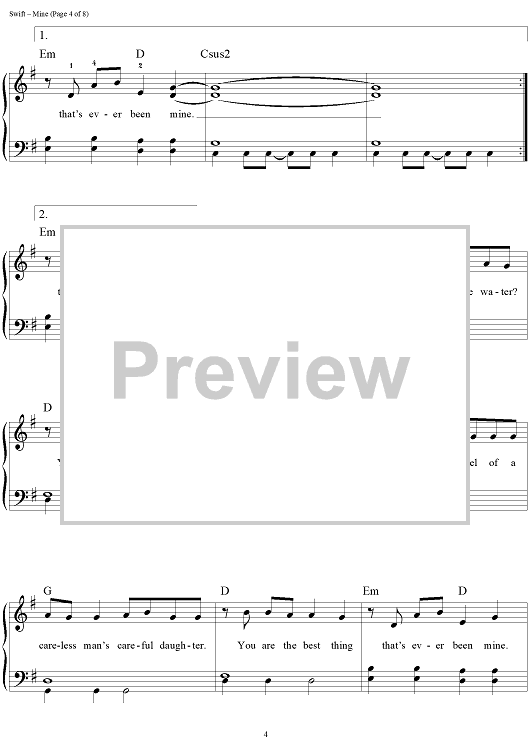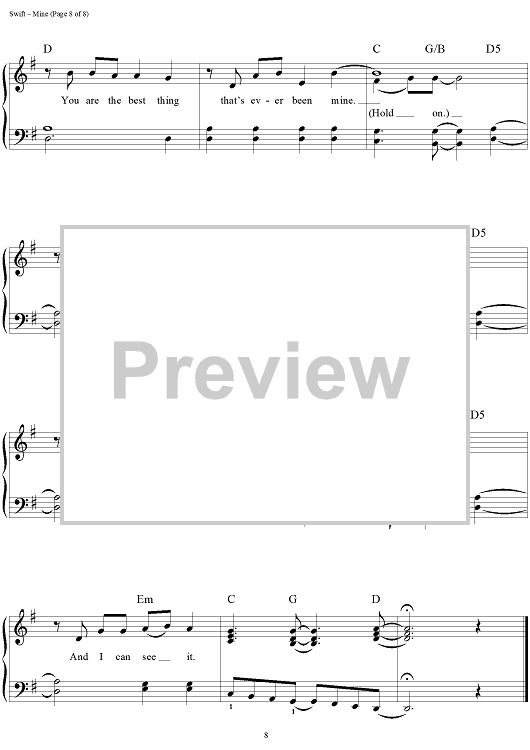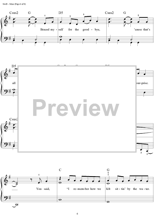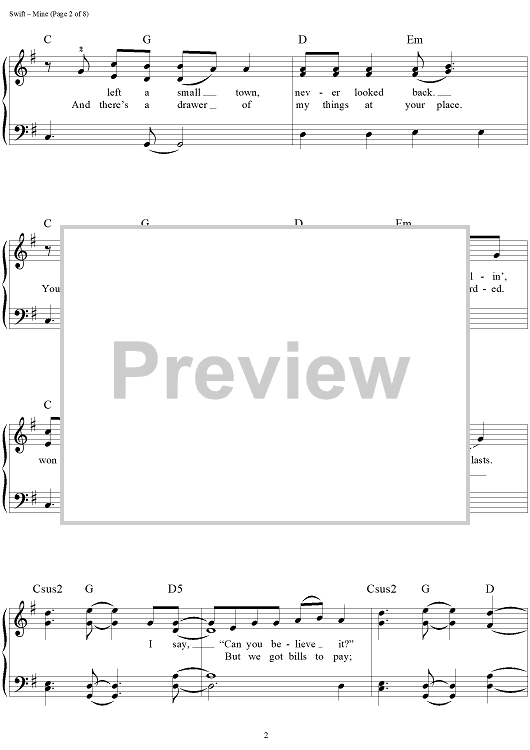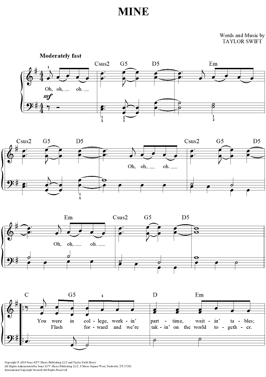 Digital Sheet Music for Mine by Taylor Swift scored for Easy Piano/Vocal/Chords; id:457631