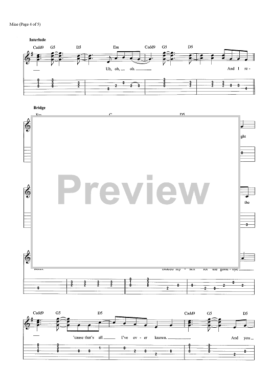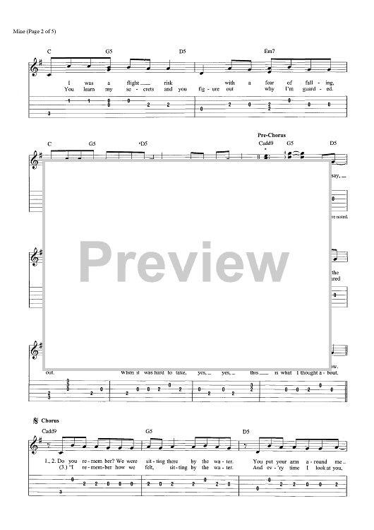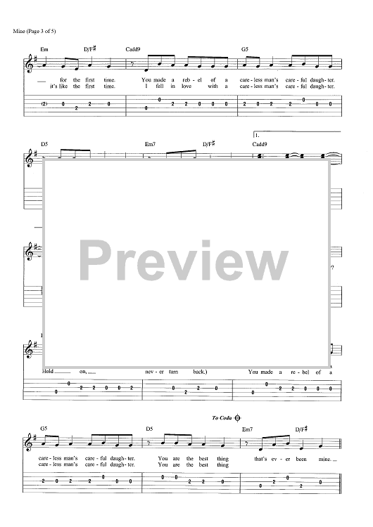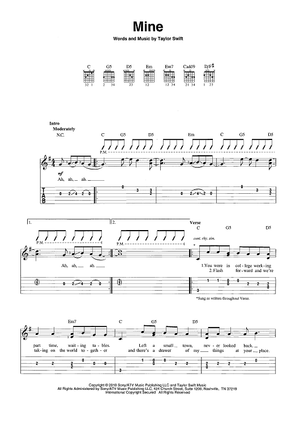Digital Sheet Music for Mine by Taylor Swift scored for Easy Guitar Tab/Vocal; id:466118