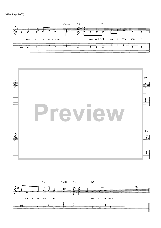 "Mine" Sheet Music by Taylor Swift