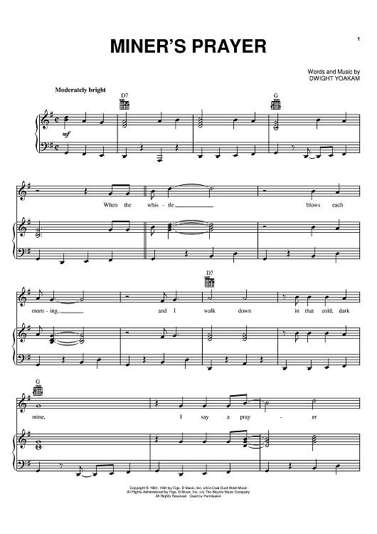 Digital Sheet Music for Miner's Prayer by Dwight Yoakam scored for Piano/Vocal/Chords; id:402490