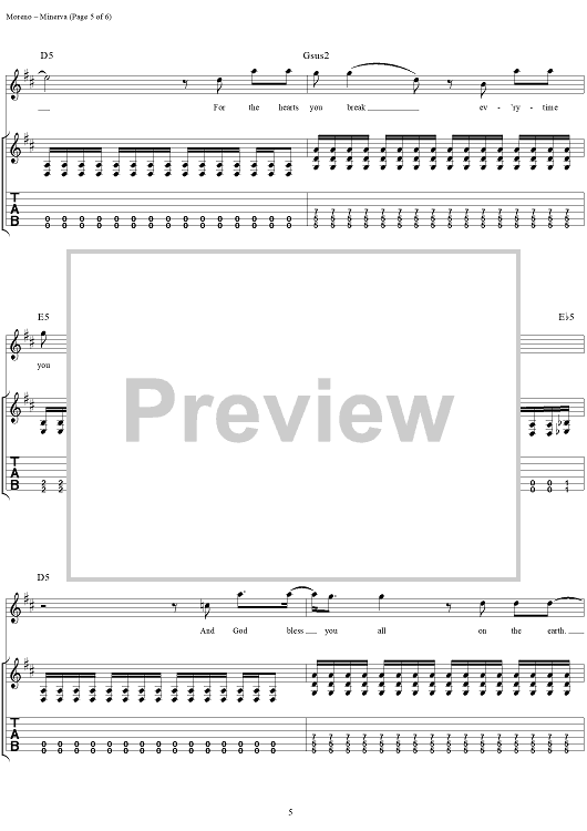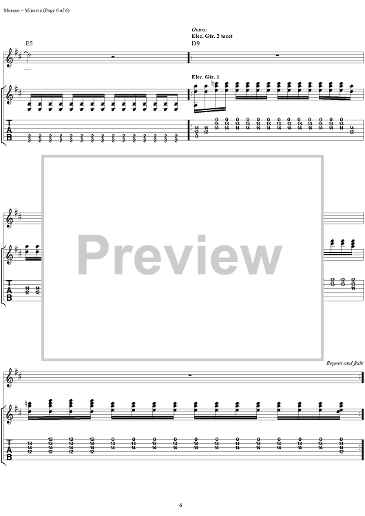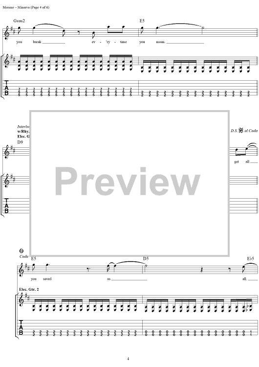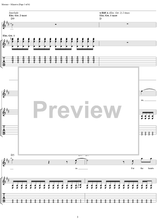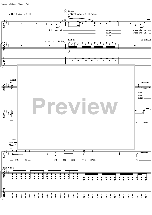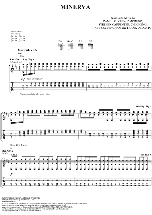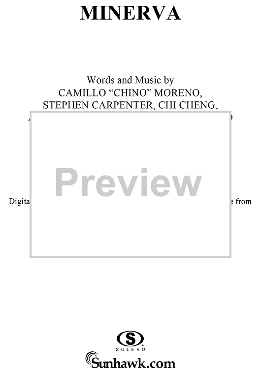 Digital Sheet Music for Minerva by Deftones, Chino Moreno, Chi Cheng, Abe Cunningham, Frank Delgato scored for Guitar Tab/Vocal; id:303023