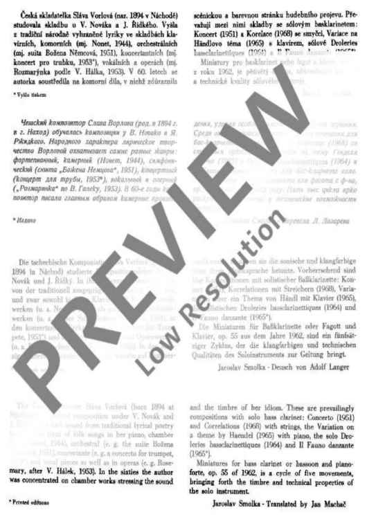Digital Sheet Music for Miniaturen by Sláva Vorlová scored for Bass Clarinet (bassoon) And Piano; id:488953