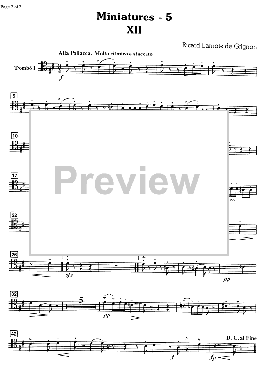 "Miniatures Vol. 5 - Trombone 1" Sheet Music by Ricard Lamote de Grignon