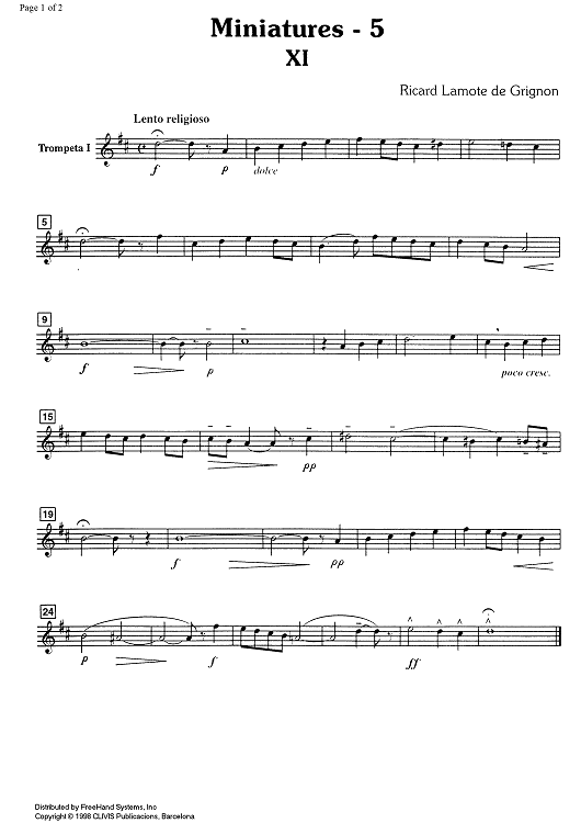"Miniatures Vol. 5 - Trumpet 1" Sheet Music by Ricard Lamote de Grignon