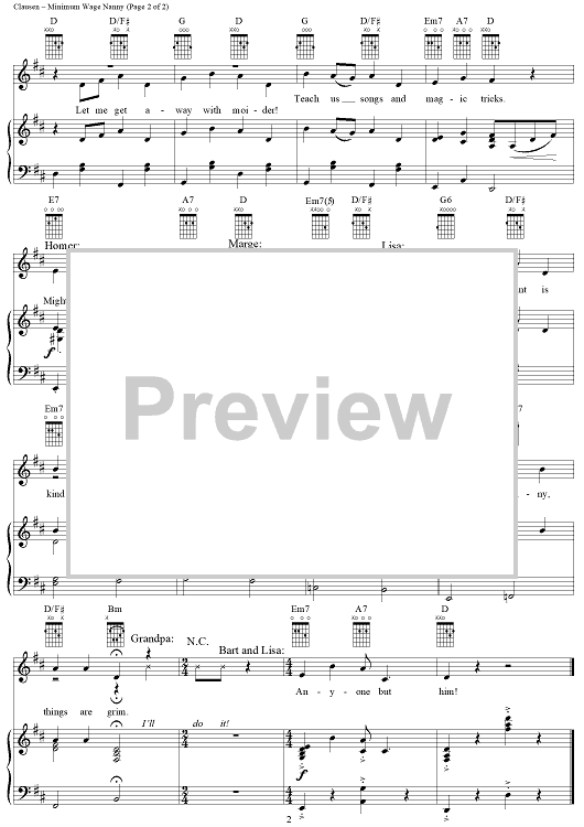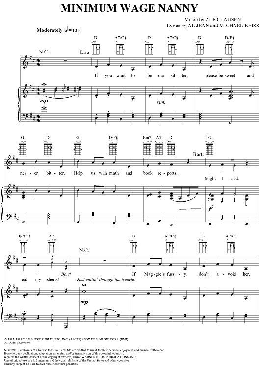 Digital Sheet Music for Minimum Wage Nanny by Alf Clausen, Al Jean, Michael Reiss scored for Piano/Vocal/Chords; id:293564