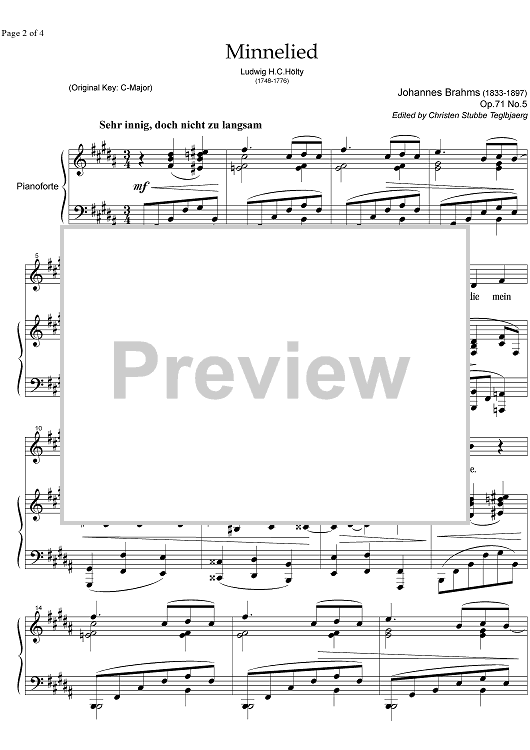 Digital Sheet Music for Minnelied Op.71 No. 5 by , Johannes Brahms scored for Mezzo-soprano or Baritone/Piano; id:336943