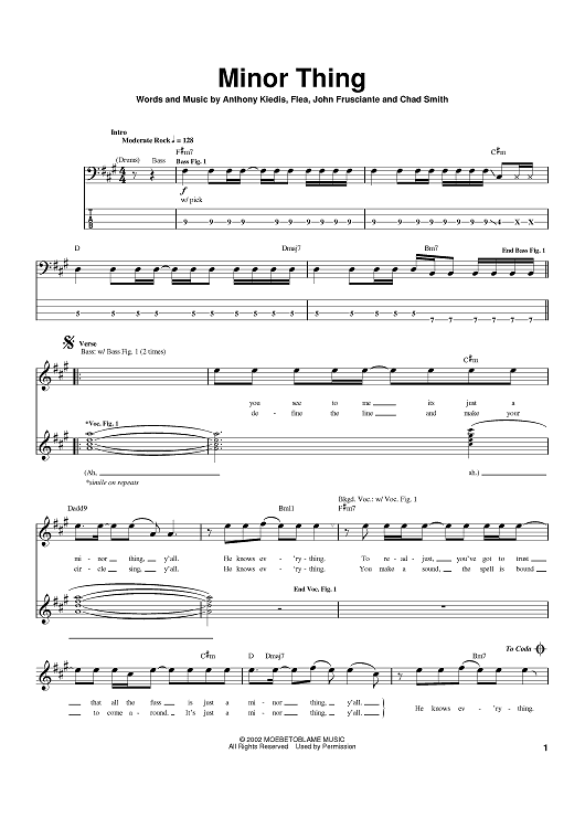 Digital Sheet Music for Minor Thing by Flea, John Frusciante, Anthony Kiedis, Red Hot Chili Peppers scored for Bass Tab; id:372152