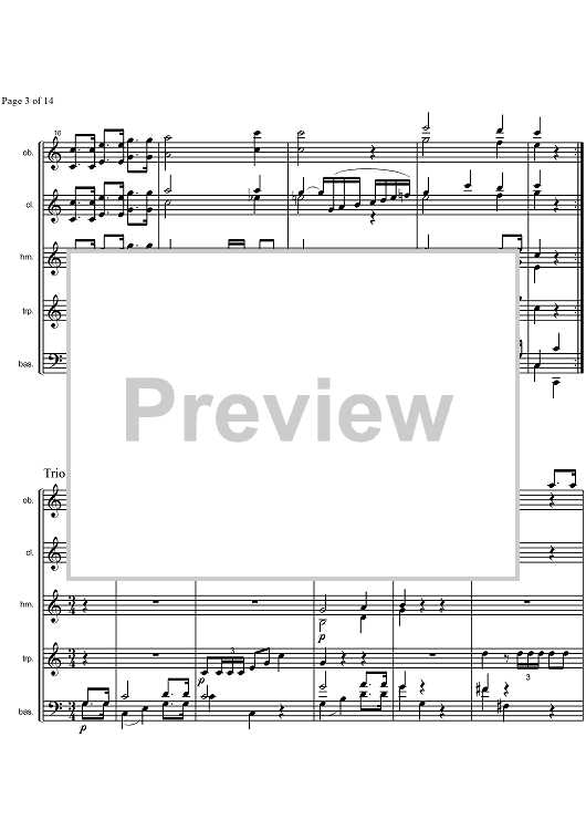 Digital Sheet Music for Minuet C Major D2d - Score by Franz Schubert scored for Wind Ensemble; id:322809