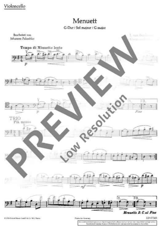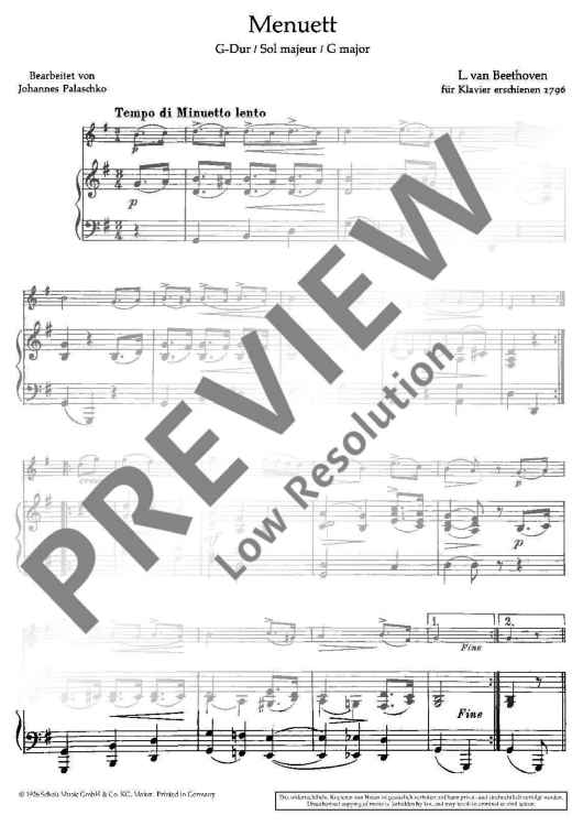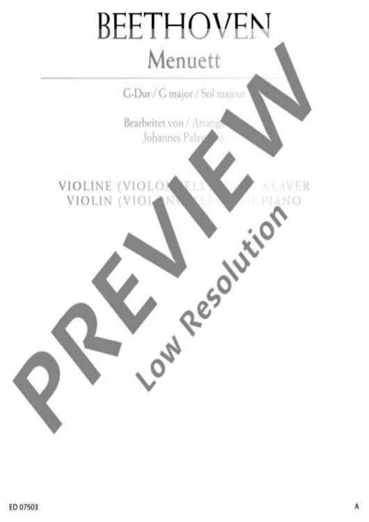 Digital Sheet Music for Minuet G Major by Ludwig van Beethoven, Johannes Palaschko scored for Violin (cello) And Piano; id:474909