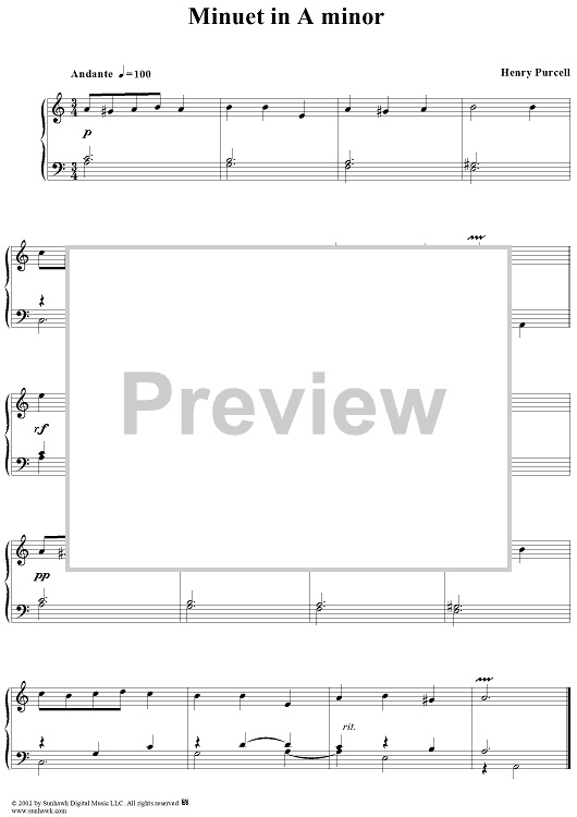 "Minuet in A Minor" Sheet Music by Henry Purcell