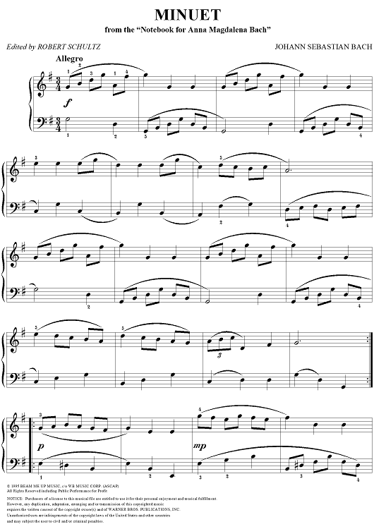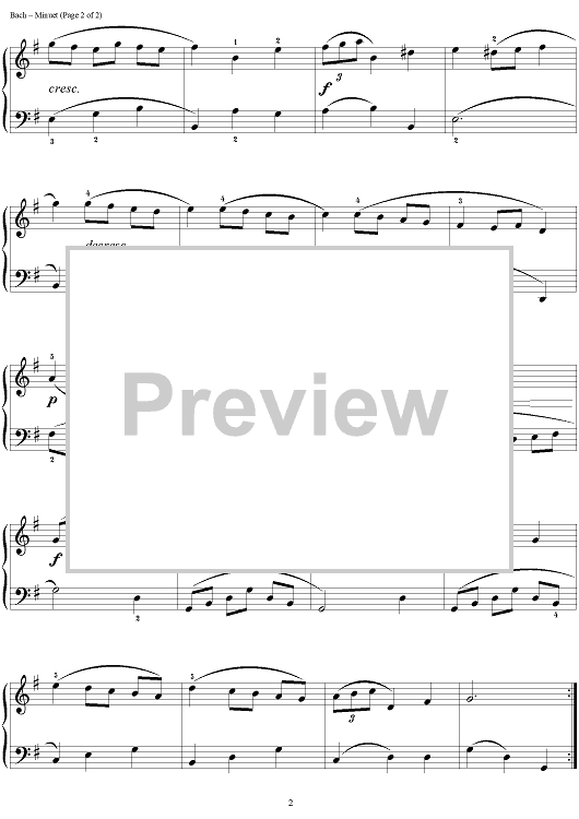 Digital Sheet Music for Minuet by Johann Sebastian Bach scored for Easy Piano; id:284662