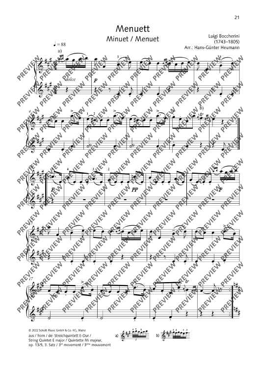 Digital Sheet Music for Minuet by Luigi Boccherini, Hans-Guenter Heumann scored for Piano (4 Hands); id:497307