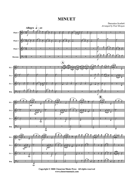 Digital Sheet Music for Minuet - Score by Domenico Scarlatti, Paul Morgan scored for Woodwind Quartet; id:416481