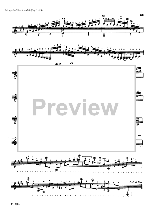 Digital Sheet Music for Minueto en Mi (Minuet in E) by Agustin Barrios Mangore scored for Guitar Solo; id:452876