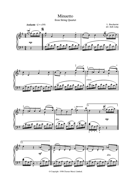 Digital Sheet Music for Minuetto from String Quartet by Luigi Boccherini scored for Piano; id:382688
