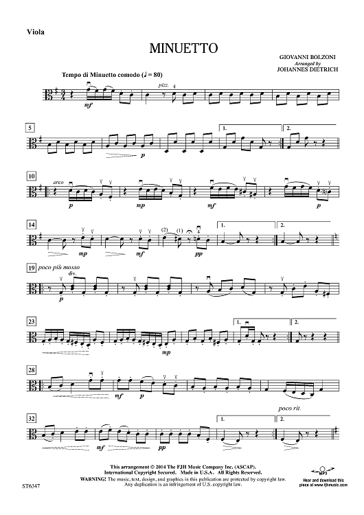 "Minuetto - Viola" Sheet Music by Giovanni Bolzoni