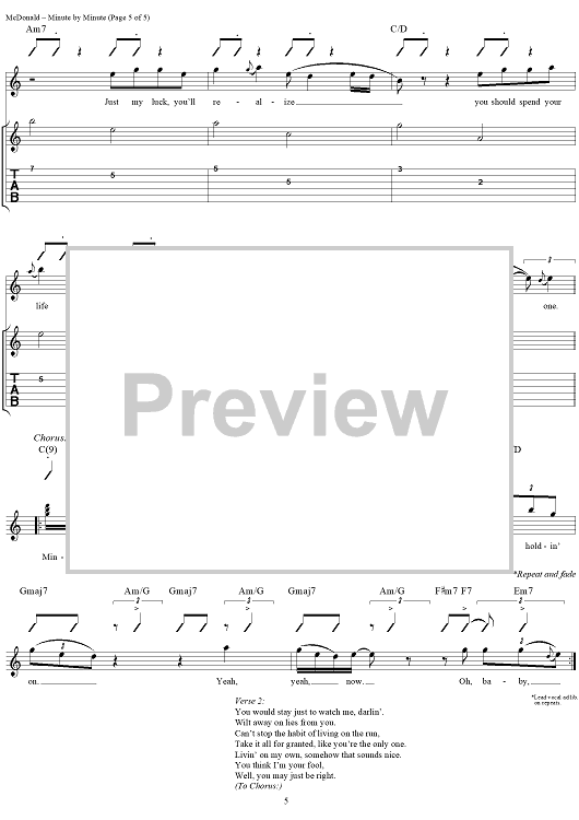 "Minute By Minute" Sheet Music by The Doobie Brothers