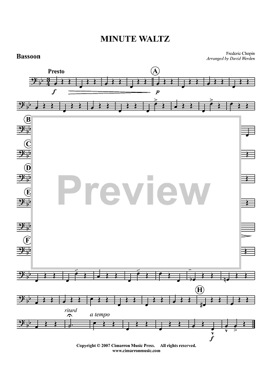 Digital Sheet Music for Minute Waltz - Bassoon by Frederic Chopin, David Werden scored for Trumpet/Euphonium Solo with Concert Band; id:362580