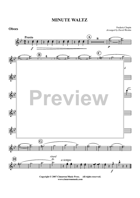 Digital Sheet Music for Minute Waltz - Oboes by Frederic Chopin, David Werden scored for Trumpet/Euphonium Solo with Concert Band; id:362567