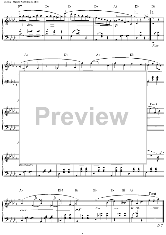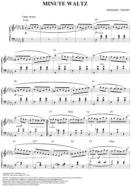 Digital Sheet Music for Minute Waltz by Frederic Chopin scored for Piano Solo; id:273061
