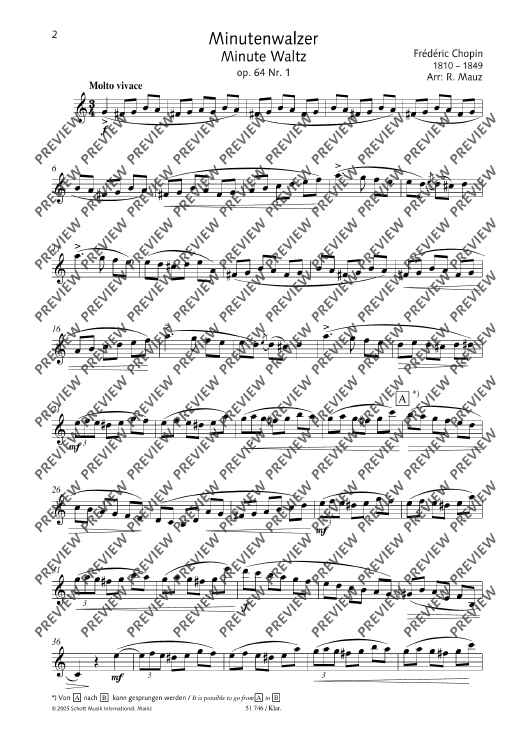 Digital Sheet Music for Minute Waltz by Frederic Chopin, Rudolf Mauz scored for Clarinet In Bb And Piano; id:497845
