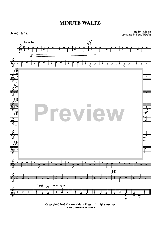 "Minute Waltz - Tenor Saxophone" Sheet Music by Frederic Chopin