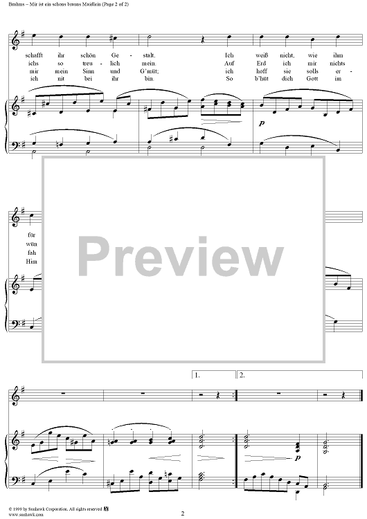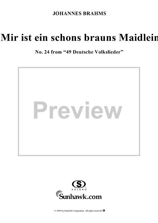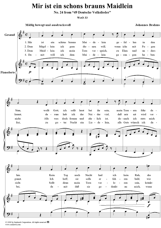 "Mir ist ein schöns brauns Maidlein - No. 24 from "49 Deutsche Volkslieder" WoO 33" Sheet Music by Johannes Brahms