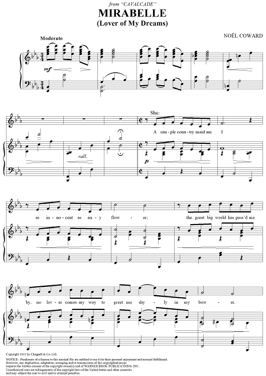 Digital Sheet Music for Mirabelle (Lover of My Dreams) by Noel Coward scored for Piano/Vocal; id:356685
