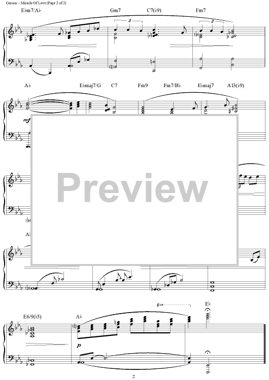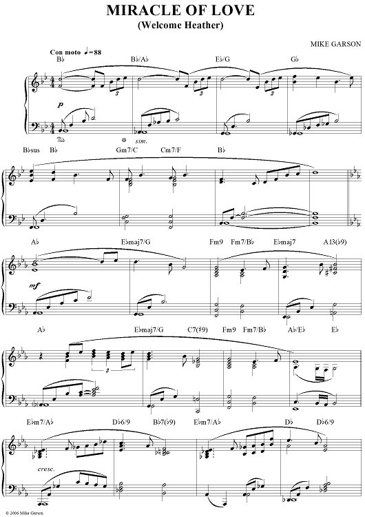 Digital Sheet Music for Miracle Of Love (Welcome Heather) by Mike Garson scored for Piano Solo; id:361915