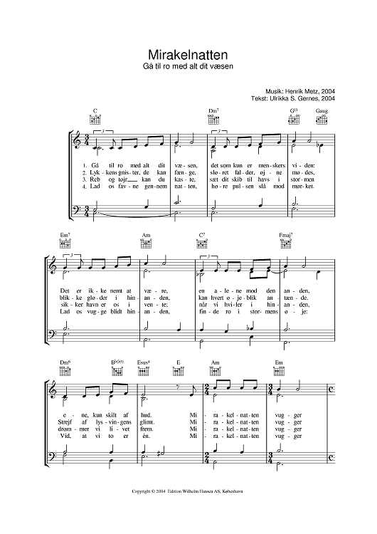 Digital Sheet Music for Mirakelnatten by Ulrikka S. Gernes, Henrik Metz scored for Piano/Vocal/Chords; id:389921
