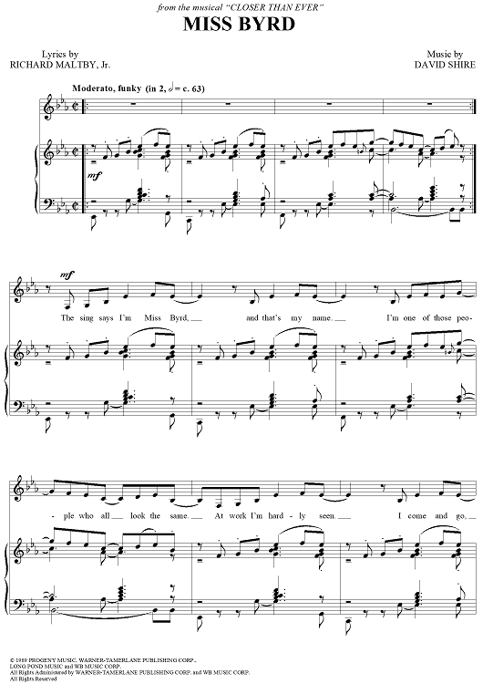 Digital Sheet Music for Miss Byrd by David Shire, Richard Maltby Jr. scored for Piano/Vocal; id:256531