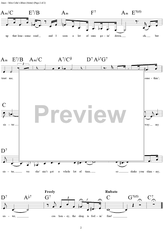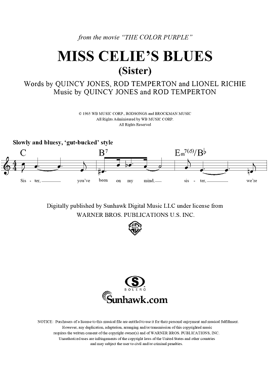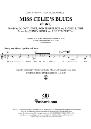 Digital Sheet Music for Miss Celie's Blues (Sister) by Lionel Richie, Rod Temperton, Quincy Jones scored for Lead Sheet; id:265472
