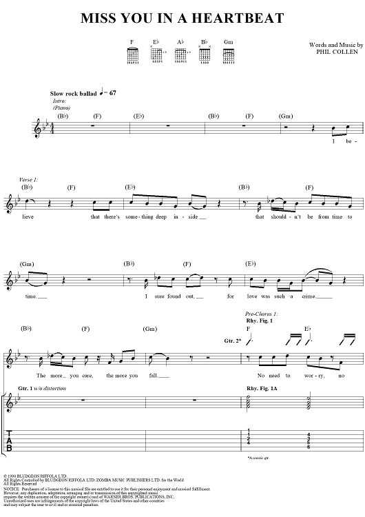 "Miss You in a Heartbeat" Sheet Music by Def Leppard