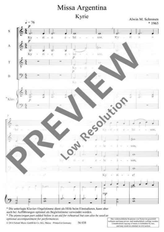 "Missa Argentina - Choral Score" Sheet Music by Alwin Michael Schronen