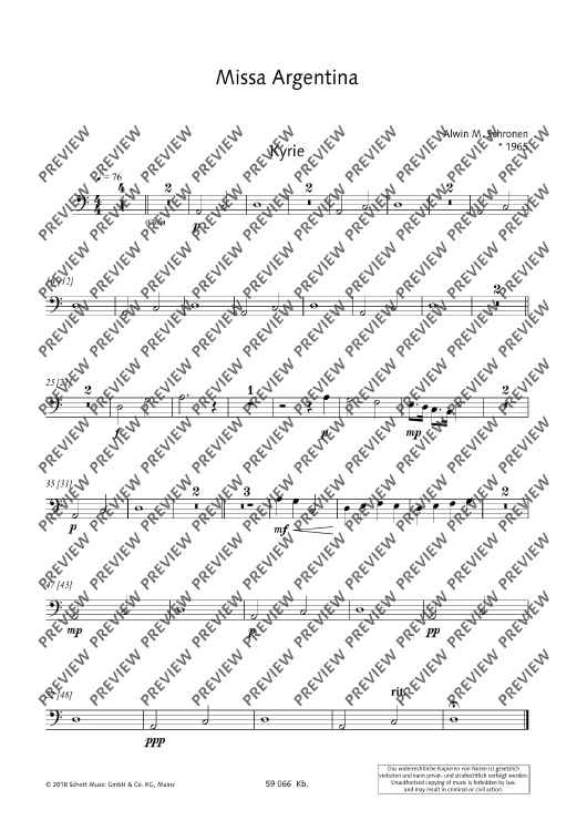 "Missa Argentina - Double Bass" Sheet Music by Alwin Michael Schronen