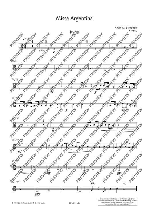 "Missa Argentina - Viola" Sheet Music by Alwin Michael Schronen