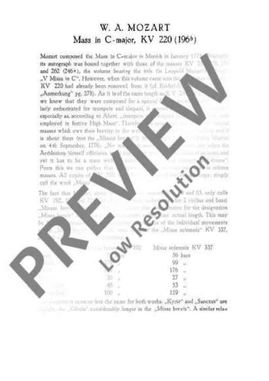 "Missa brevis C major - Full Score" Sheet Music by Wolfgang Amadeus Mozart