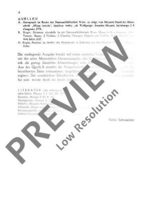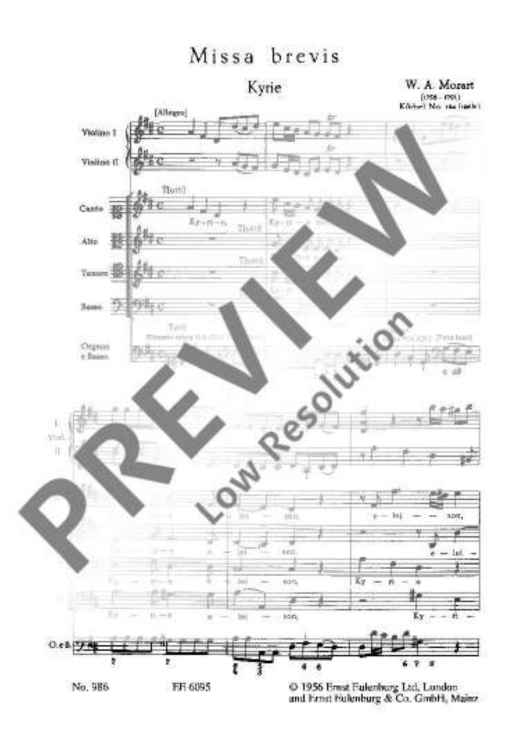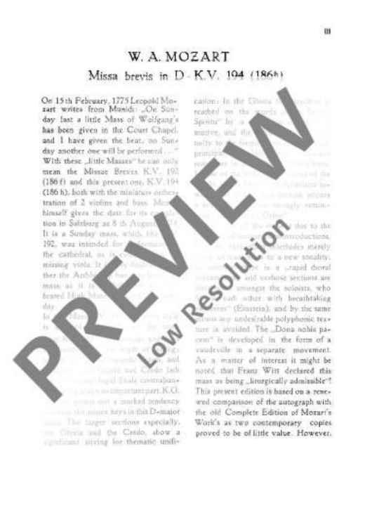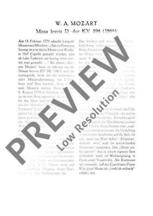 "Missa brevis D major - Full Score" Sheet Music by Wolfgang Amadeus Mozart
