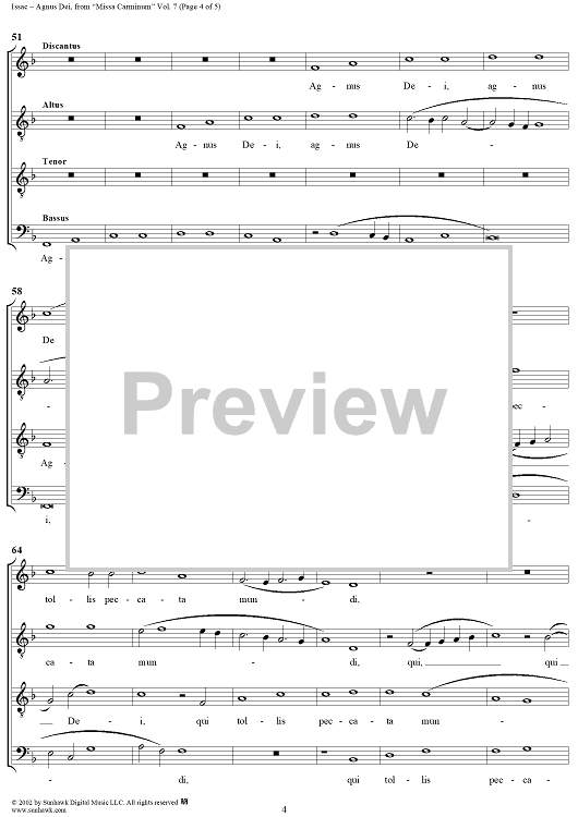 Digital Sheet Music for Missa Carminum: Agnus Dei by Heinrich Isaac scored for SATB Chorus; id:266848