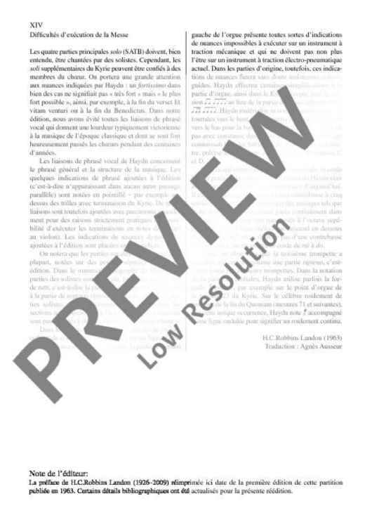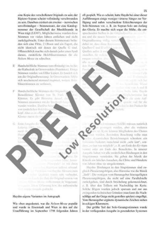 Haydn's 'Mass in Times of Fear' is also known under the epithet 'Nelson Mass' which alludes to the famous Battle of Abukir in which the British Admiral Nelson fought the French victoriously. Haydn could not have known anything about this at the time of completion of the Mass, but it was not least the instrumentation with its military character – trumpets and timpani play a major role – that captures the threatening atmosphere of that time of unrest. The study score is published in an easy-to-read large format for the first time.