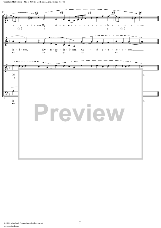 Digital Sheet Music for Missa Je Suis Desheritée: Kyrie - Full Score by Nicolas Gombert, Steven G. McCollum scored for Four-part Mixed Chorus; id:114150