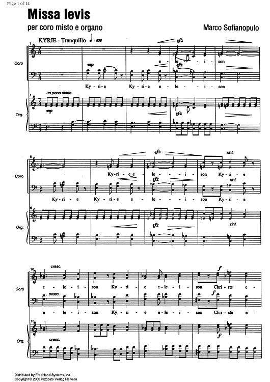 Digital Sheet Music for Missa levis by , Marco Sofianopulo scored for Choir/Organ; id:330498