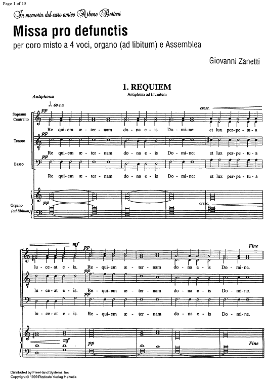 Digital Sheet Music for Missa pro defunctis by , Giovanni Zanetti scored for Choir/Organ; id:345130