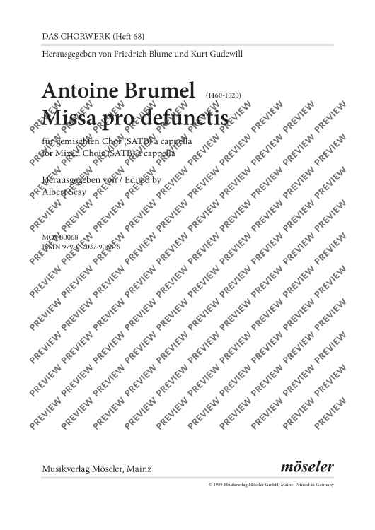 Digital Sheet Music for Missa pro defunctis by Antoine Brumel scored for Mixed Choir (satb) A Cappella; id:500404