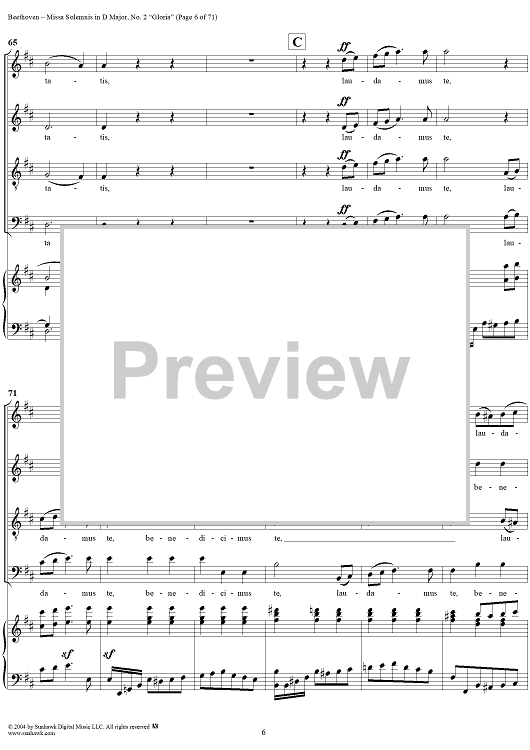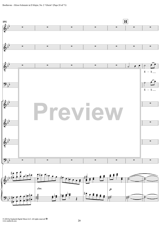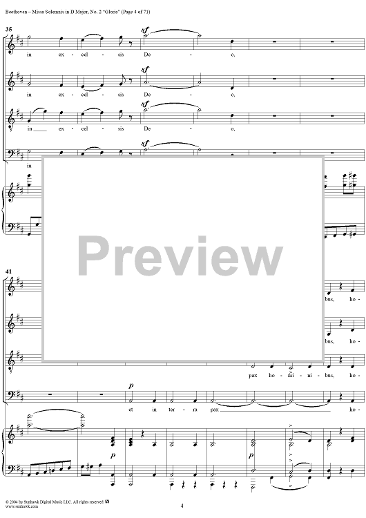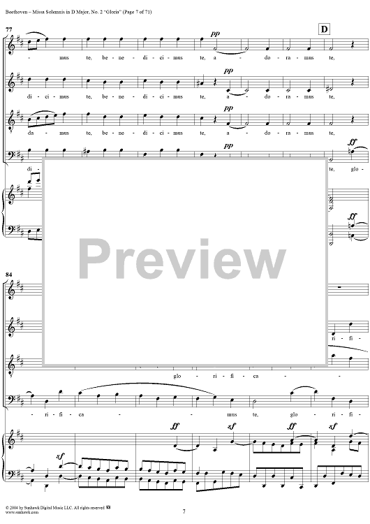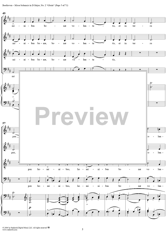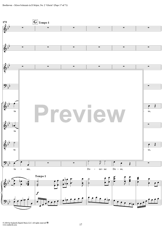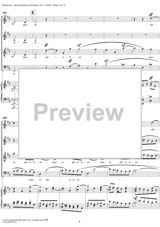 Digital Sheet Music for Missa Solemnis, No. 2: Gloria by Ludwig van Beethoven scored for Soli/SATB/Piano; id:304902