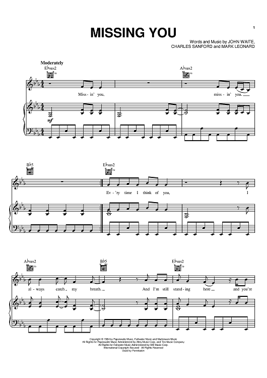 "Missing You" Sheet Music by John Waite