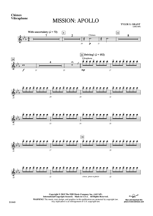 Digital Sheet Music for Mission: Apollo - Chimes / Vibraphone by Tyler S. Grant scored for Concert Band; id:455145
