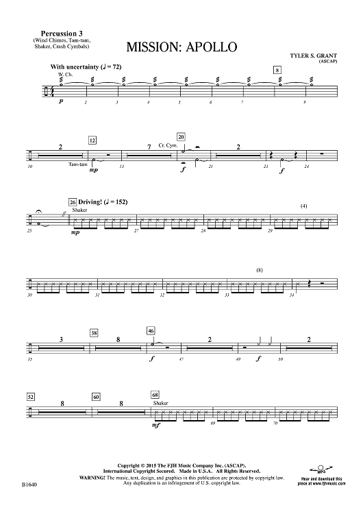 "Mission: Apollo - Percussion 3" Sheet Music by Tyler S. Grant