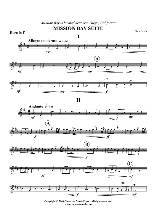 "Mission Bay Suite - Horn in F" Sheet Music by Gary Burch
